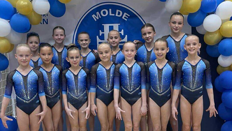 12-åringer: – Madeleine tok 1. plass,🥇 Madikken tok 3. plass🥉 og Celine tok 13. plass, Hedda 29, Lilly 31, Rani 49 og Eva 53. av 102 gymnaster.